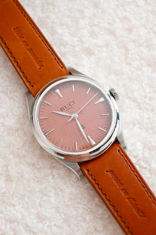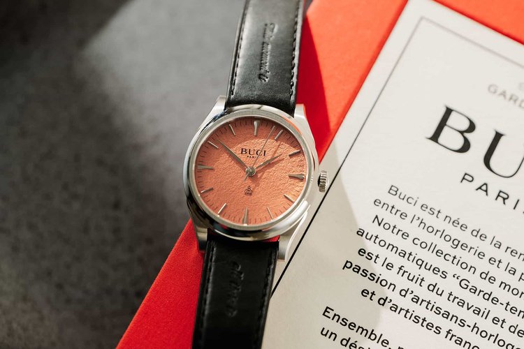 Each box includes a numbered automatic Buci watch, a book case and a poetry collection.